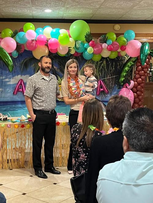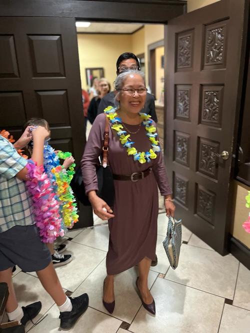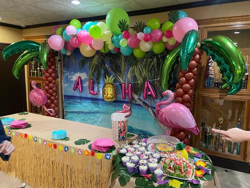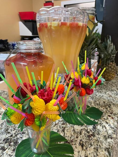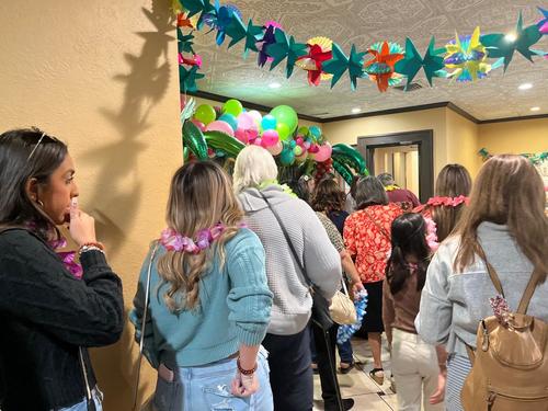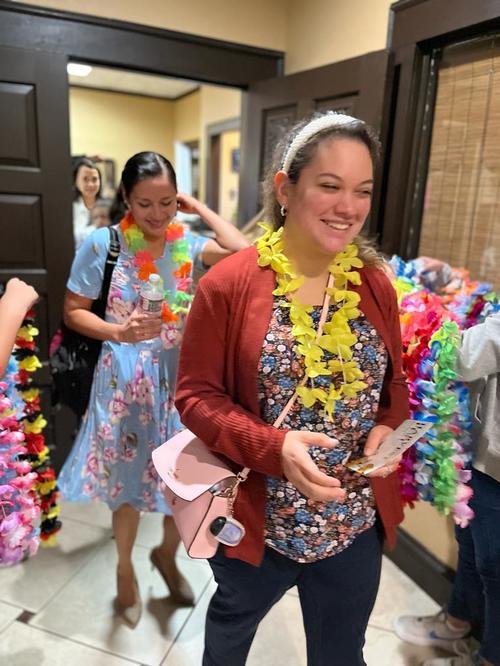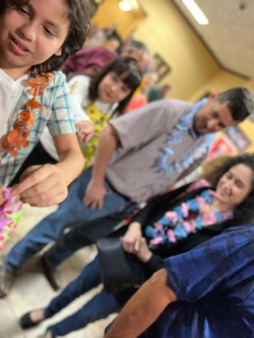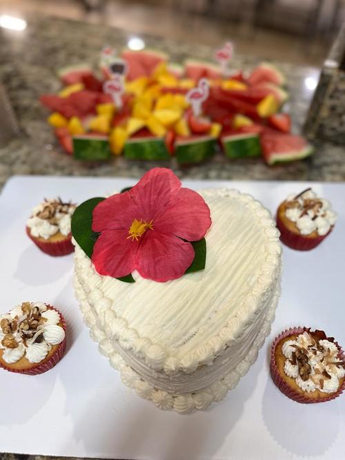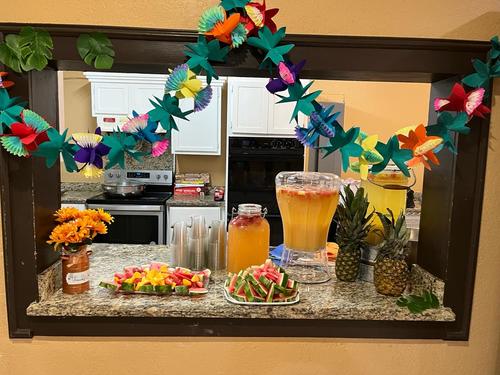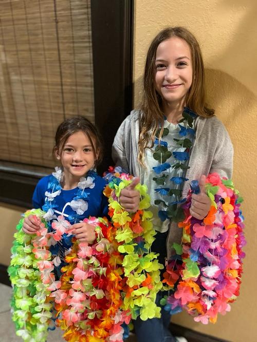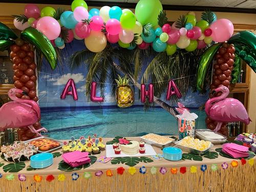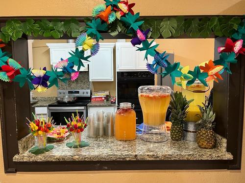 With fruity drinks, fruity cakes, cupcakes, fruit, leis, and Hawaiian music, we brought a little bit of Hawaii to them as a preview of their upcoming trip.