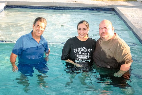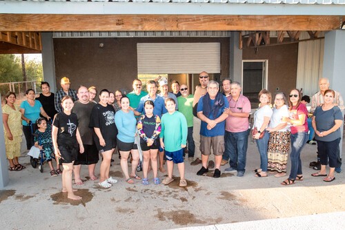 On Thursday, August the third , the group from the Spanish service met at Sergio’s home to baptize five members and celebrate afterward with a delicious meal of tacos “Chiapas” style. Friends and family members of Sergio were also present for the event. Many of them hearing the Gospel that was preached prior to the baptisms possibly for the first time. In all, there were about forty-five people in attendance for the joyous occasion.